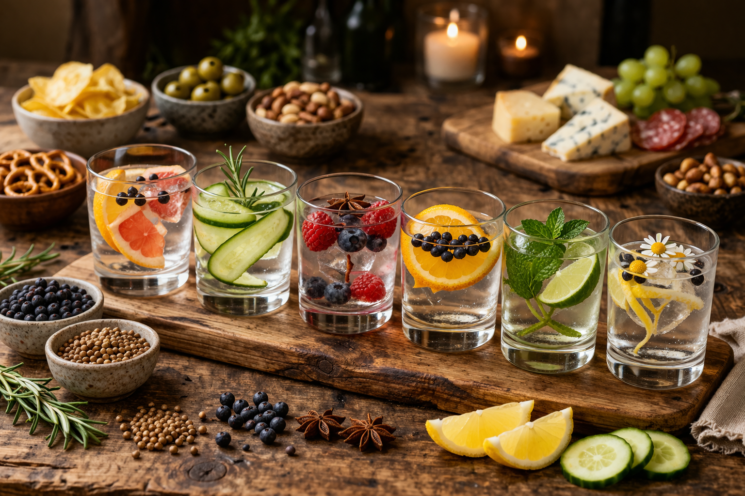 Die Proben: Gemeinsames Probieren von meist fünf bis sieben ausgewählten Ginsorten pur und mit passenden Tonics.