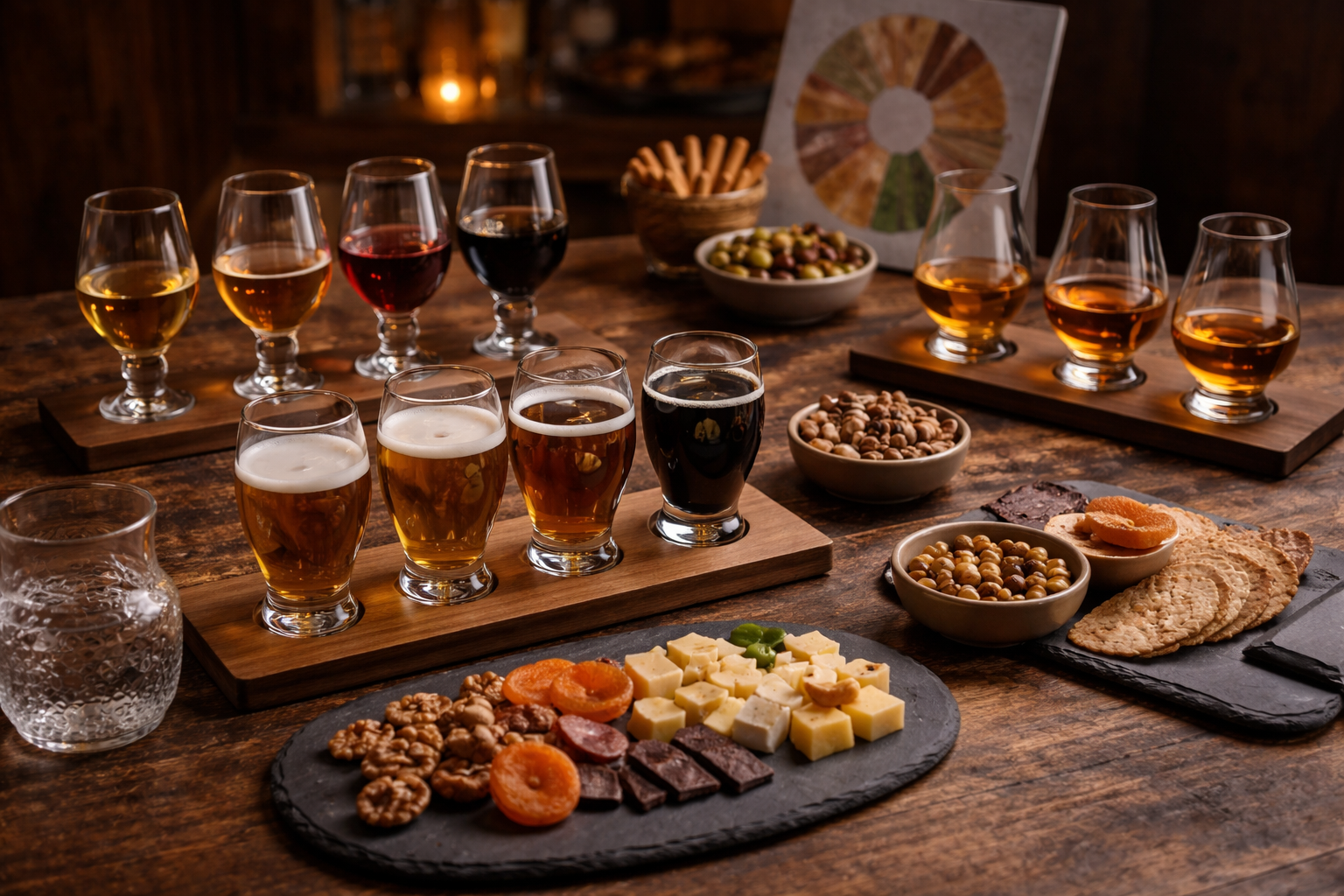 Kulinarische Begleitung: Wasser zum Neutralisieren sowie kleine Knabbereien, die den Geschmack der Proben unterstützen.
